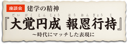 木村 基本的には、これまでの「大覚円成 報恩行持」を柱にして、併せて現代的表現も使っていく。もちろん、単独で使っても構いませんが、併用方式で普及を図るのが最も望ましいのではないか、と私は考えています。