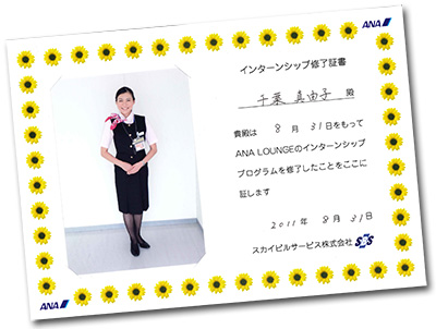 期間終了時にスタッフとキャビンアテンダントと私たちの懇談会がありました。海外で活躍するキャビンアテンダントの仕事も魅力的でした。就職活動に向かって、語学力に加え、手話検定や秘書検定など、さらに自分を磨いていこうと思います。