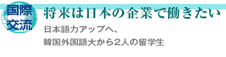 学術交流協定に基づき、韓国外国語大学校との間で2007(平成19)年度から続いている留学生の短期派遣。ことしも韓国から2人の女子学生が本学にやって来た。