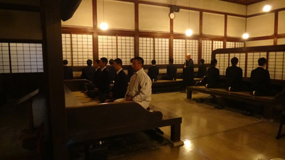 總持寺の大祖堂(千畳敷)の畳に坐り、道元禅師の教えである『只管打坐(しかんたざ)』を体験、実践することで、充実した朝の時間をスタートし、日々の生活を振り返る機会としている生徒も多かったです。高2・3年生の体育部部員は衆寮(しゅりょう)で坐蒲(ざふ)を用いて壁に向かっての本格的な坐禅を体験しました。