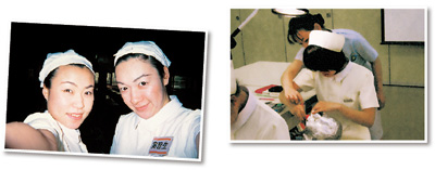 平成11年4月、鶴見大学短期大学部歯科衛生科に入学しました。当時の実習衣は前年までの白いワンピースタイプから、クリーム色のパンタロンスタイルに変わったばかりで、1年生は新入生であることが一目でわかる年でした。ナースキャップのつけ方が板につくまでしばらく月日がかかったものです。