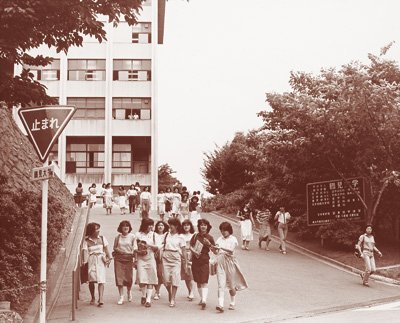昭和28年に最初に創設された鶴見女子短期大学国文科は鶴見女子高校の一室を仮教室として発足し、また昭和38年に設立された鶴見女子大学文学部の当時の校舎は現在のキャンパスから離れた丘の上のこじんまりとした木造二階建ての荒立校舎でした。文学部英米文学科の4期生であった私は一年間だけでしたが、今でも荒立校舎で受けた授業や先生との交流が木造の優しい日差しとともに思い出されます。