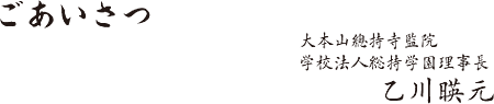 伝統あるこの学園で学んだ方、またこれから入学される皆さまには、ぜひ瑩山禅師のみこころ、即ち「皆共に歩もう」という和合のこころを大切にして、ご精進いただきたいと念願します。
