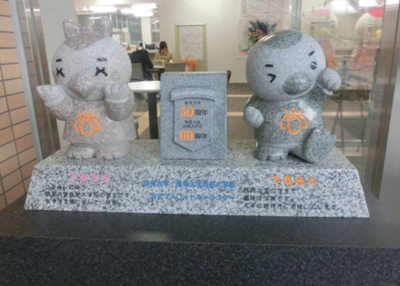 鶴見大学創立50周年・同短期大学部創立60周年の記念事業の一環として決定した、本学マスコットキャラクター「つるみん」・「つるたん」ですが、この度、(株)内藤石材店様より「つるみん」・「つるたん」を象った彫像が寄贈されました。