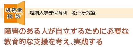 本学短期大学部保育科の履修科目に「障害児保育※」があるが、誰もが平等に教育を受ける権利がある中で、障害のある子どもの保育や教育には適切な指導が求められる。障害のある子どもの教育をテーマとしているのが、松下浩之講師の研究室である。